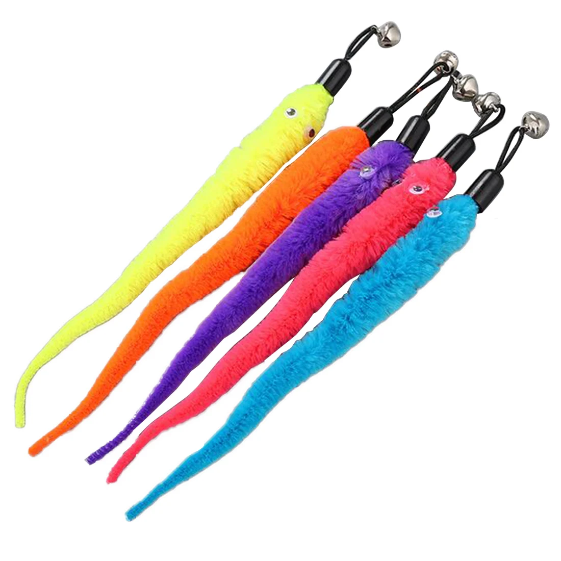 5pcs Colorful Pet Kitten Cat Teaser Replacement Refill Plush With Bell for Cat Rod Wand