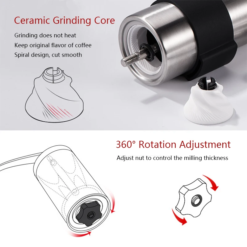 Zawartość opakowania:1 x ręczny młynek do kawy, 1 x uchwyt korby