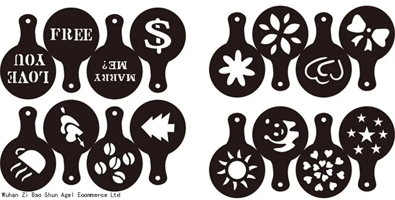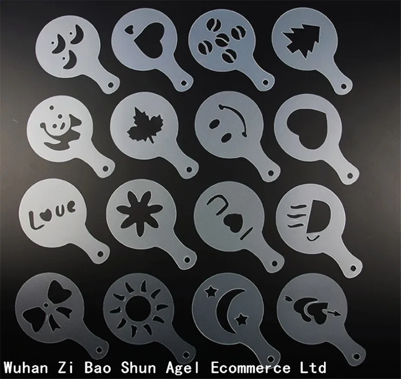 Pakiet zawiera: 1x16 Pcs kreatywne szablony do kawy