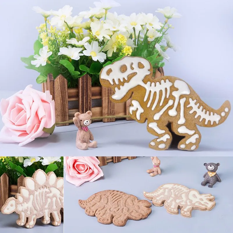 HOURONG Dinosaur Cookies Cutter Biscuit Mould 3D Biscuit Sugarcraft Dessert Baking MoldFondant Cake Decoration Tool