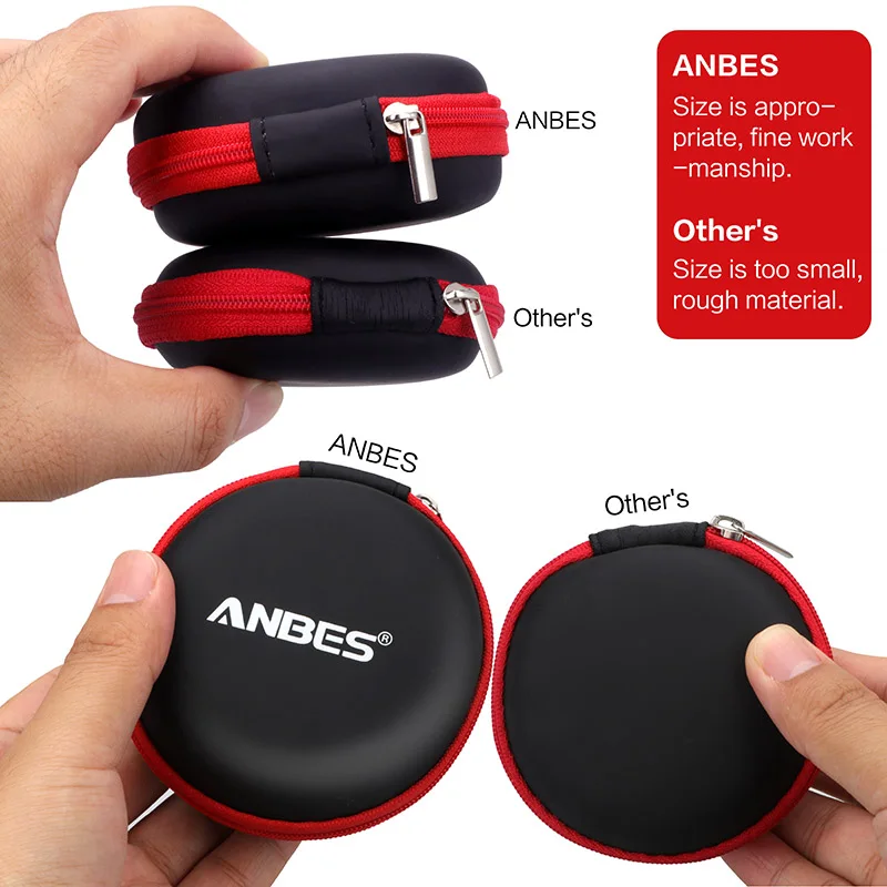 ANBES Mini Zippered Round Storage Hard Bag Headset boxes Earphone Storage CaseBoxfor Earphone Bag TF SDCards Earphone Case