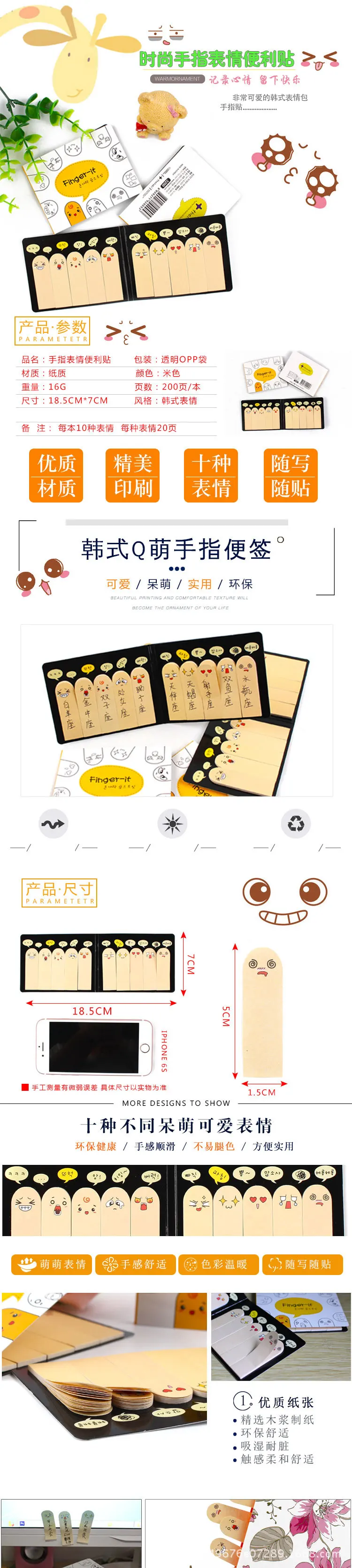 1 pc Cute Sticky Note Finger Self-adhesive Memo Pads Funny Expression Stickers Bookmark School Stationery Supplies 200 Pages