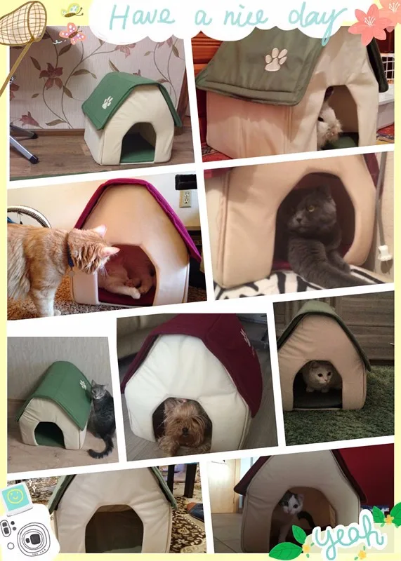 Wygodne miękkie kolorowe pluszowe legowisko dla psa i kota w kształcie budy składane przenośne w kolorze czerwonym zielonym