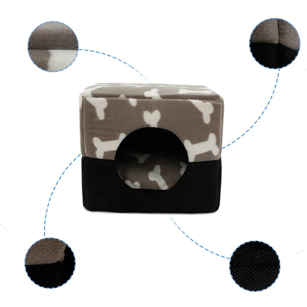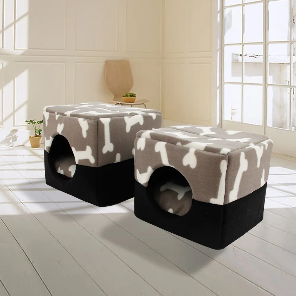 Three-Use Bed For Dogs Cotton Kennel Pet House Dog House Pattern Bone Color Grey Size S M