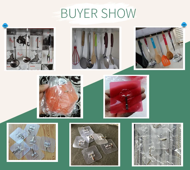 These hooks are viscous and firm with super load bearing property.It is quite safe and environmentally friendly to use these hooks without leaving glue marks on walls.More convenience for your life!