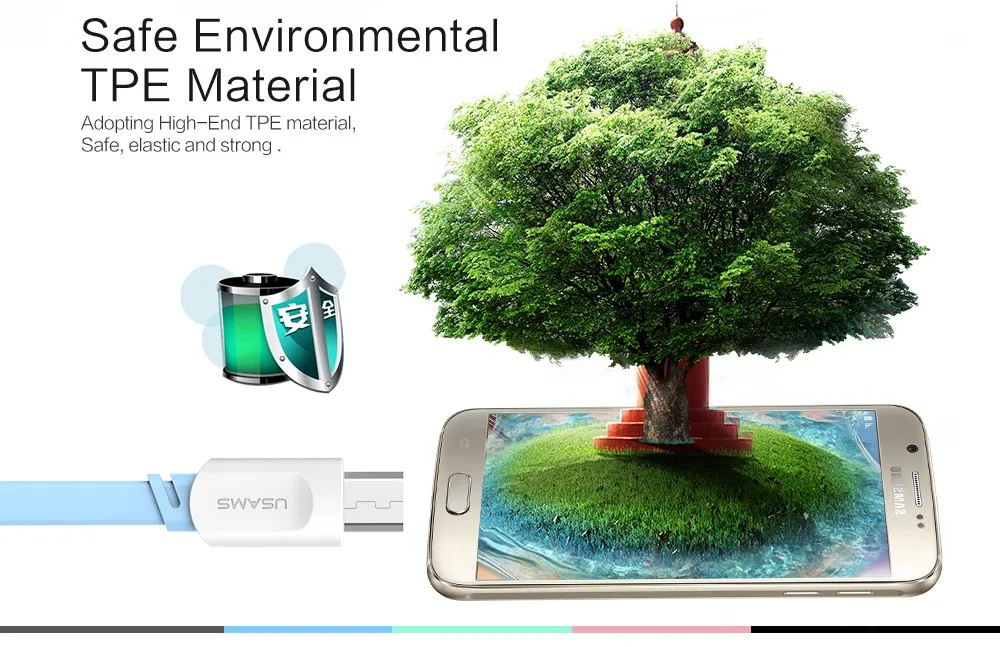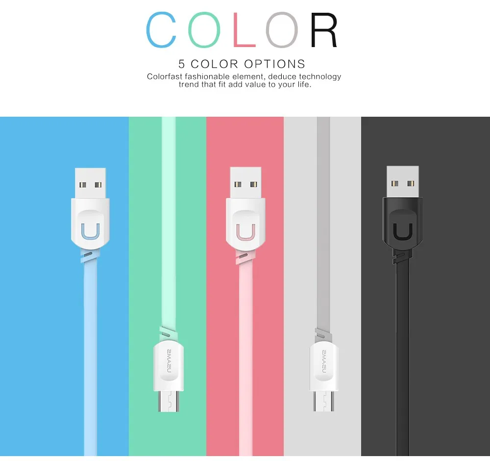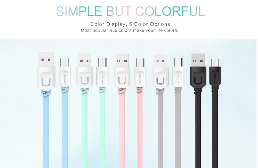 Usb Micro cable usb original USAMS flatcharger data cable 1m Mobile Phone microusb Cables for samsung S6 note5 Huawei