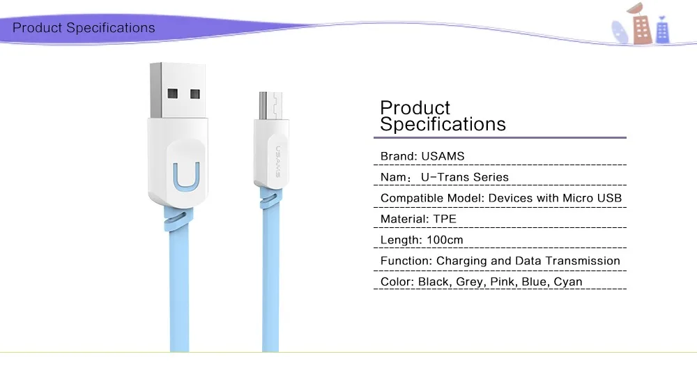 | This is universal Micro usb cable,it support all the micro usb port device, it support Date sync and Charging. Features: Length:100cm/1m/3ft Color: Pink/Black/Blue/Grey/Green Feature1: Support Max Current 2.1A Feature2: Unique Design for Aliexpress Customer,Delicacy, Unique! Feature3: High Efficient Gold Plating Interface. Specifications: Compatie Brand: It support All micro usb port Device, such as Samsung Xiaomi Huawei Meizu Sony HTC etc. Product size: 1m/ 3ft Charging Speed The max current is 2.1A Output. (Note: the charging speed is according to the phone model and cable,please kindly understand) Package included: 1 * USB CABLE Ship Method Order < 5$,ship by ordinary air mail Order > 5$,ship byregistered air mail Feedback If you like our good & service, pls give us all five star, it is really important for us.Customer feedback is gold for us. Thank you in advance! Not Received & Not Work We promise all product are 100% original USAMS Brand. 100% full checking , all products have quality guarantee! But if you have any problem, you still can contact with us feel free, we will help you to solve it, if we can provide some picture or video to support, it will help us to solve prolem more fast than aliexpress stuff. Thank you! Note: 1. Accessory ONLY, mobile phone is not included. |