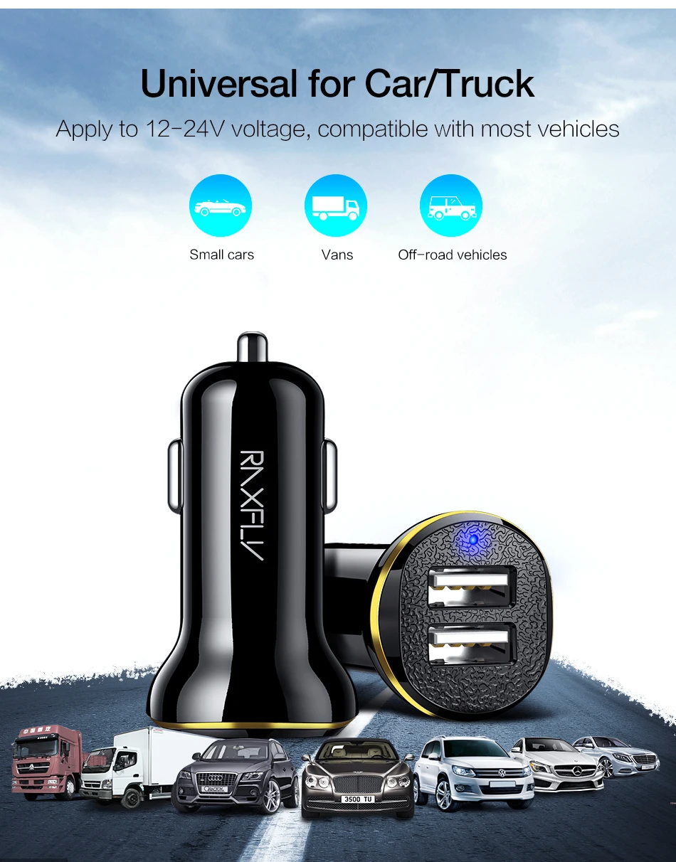 RAXFLY Dual Ports USB Car Charger ABS LED Display Car-charger