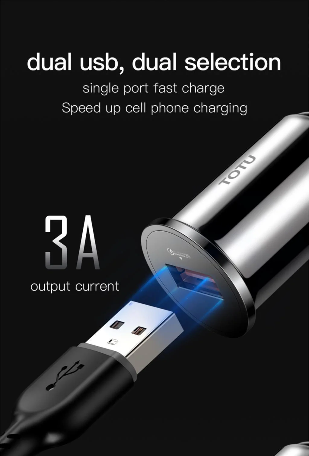 TOTU USB Car Charger Quick Charge 3.0 For Samsung Xiaomi Huawei QC 3.0 Devices(Please noted: Your phone and your charging cable need support QC3.0)