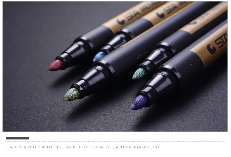 STA 10 Colors Metallic Marker Pens for Rock Painting Medium Point Metallic Color Markers for Ceramic Glass Plastic Scrapbooking