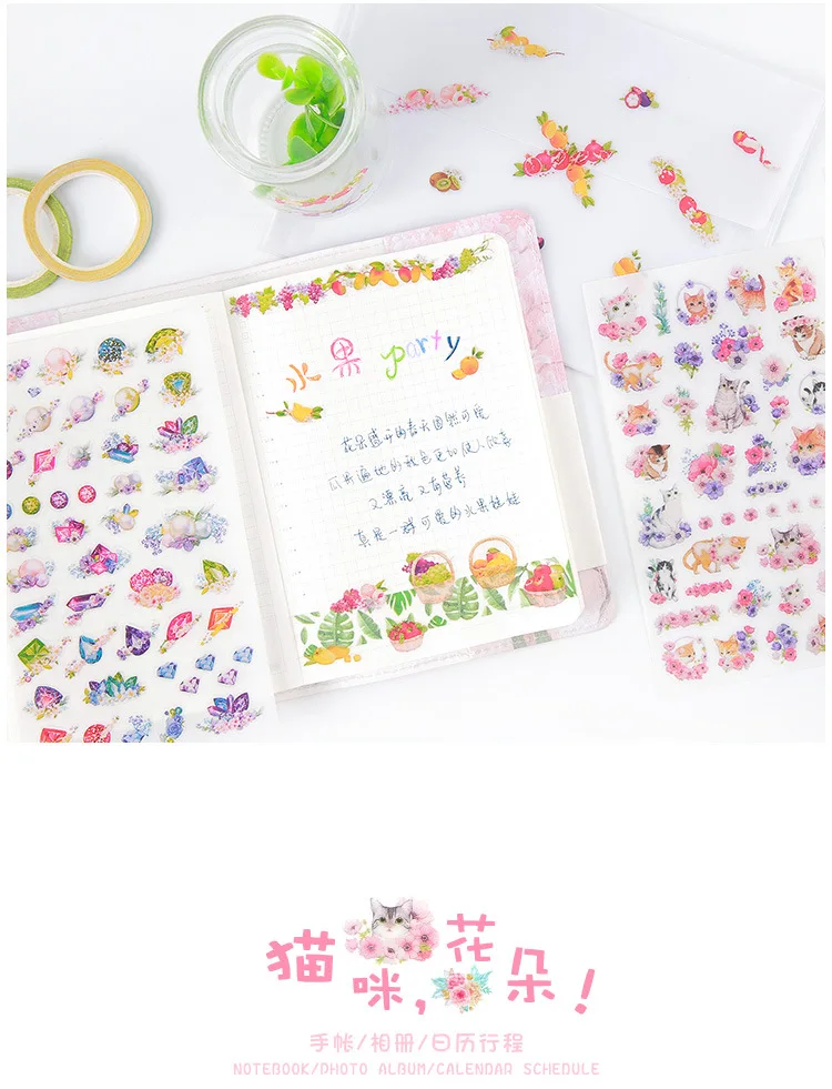 Ewa Szymańska on 18/05/20206 arkuszy DIY Kawaii naklejki kwiaty PVC kot kreskówka naklejki papieru Scrapbooking do dekoracji Album fotograficzny pamiętnik