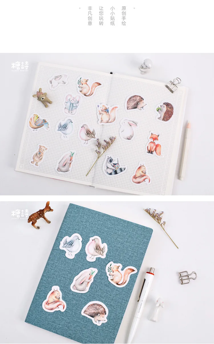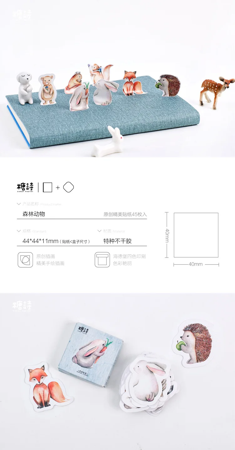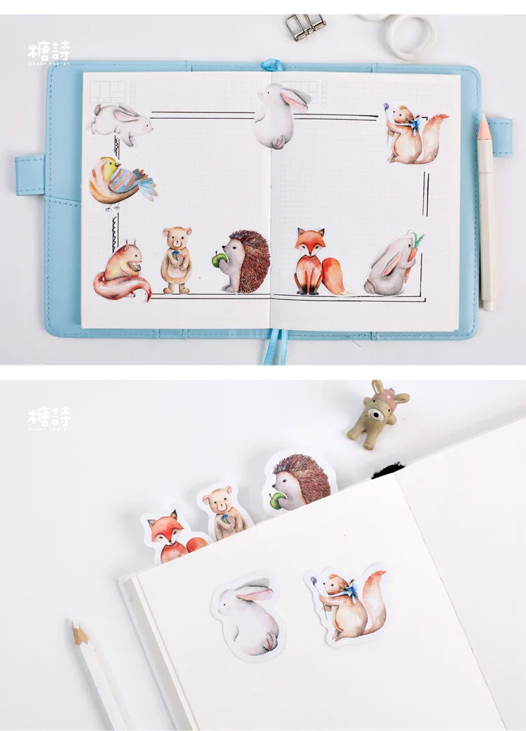 Marta marta on 23/08/202045 sztuk/partia śliczne leśne zwierzęta dekoracji naklejki samoprzylepne Diy Cartoon naklejki pamiętnik naklejka księga gości na