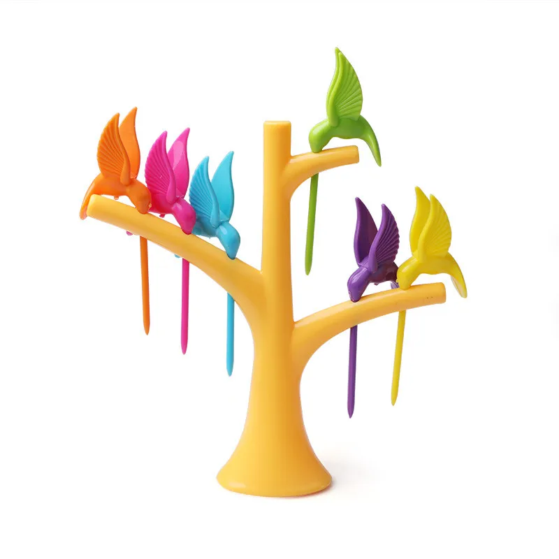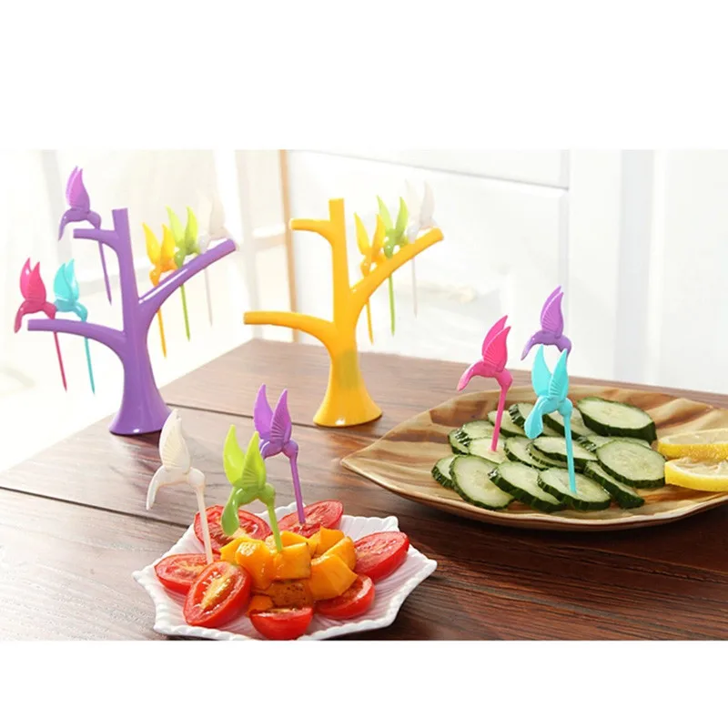 1Set trees 6 forks bird tree Fruit Fork Creative Fruit Fork Toothpick Gadgets Fashion Fork Kitchen Accessories