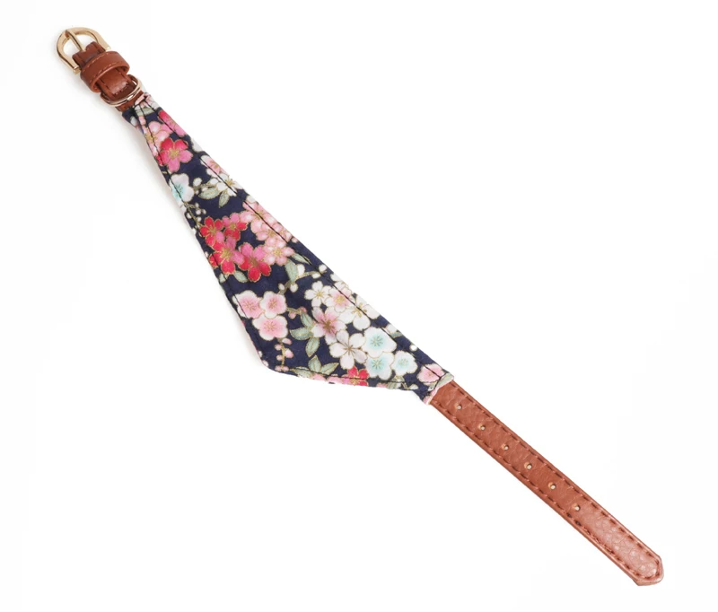 pawstrip PU Leather Dog Collar Bow Flower Print Small Dog Leash Collar Bandana Outdoor Pet Walking Lead