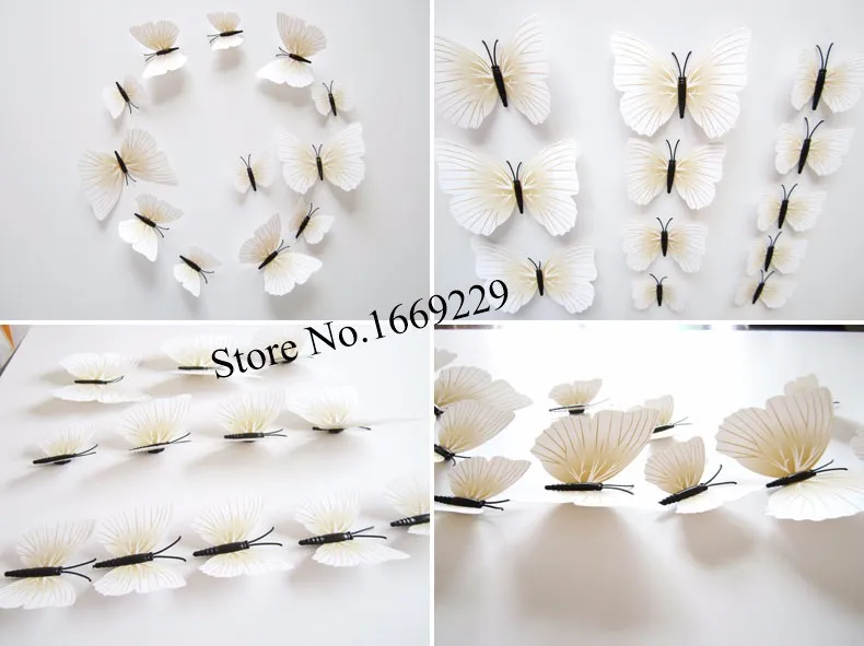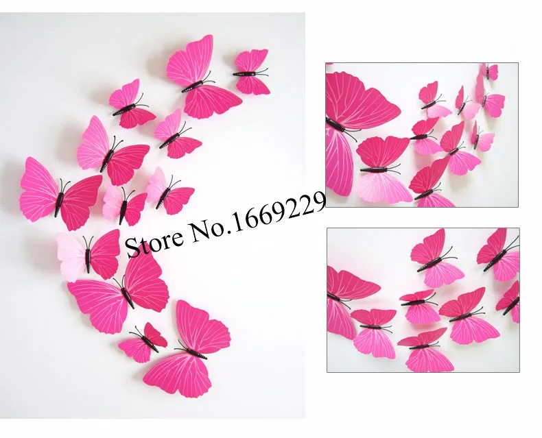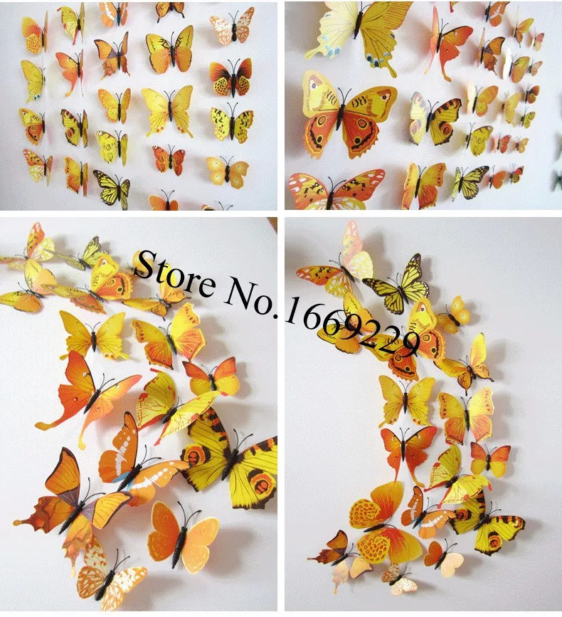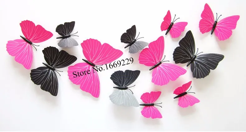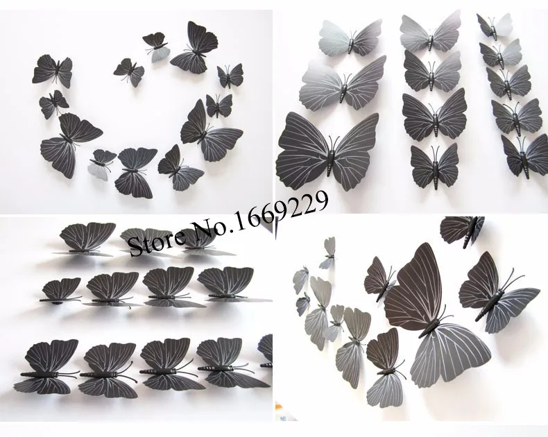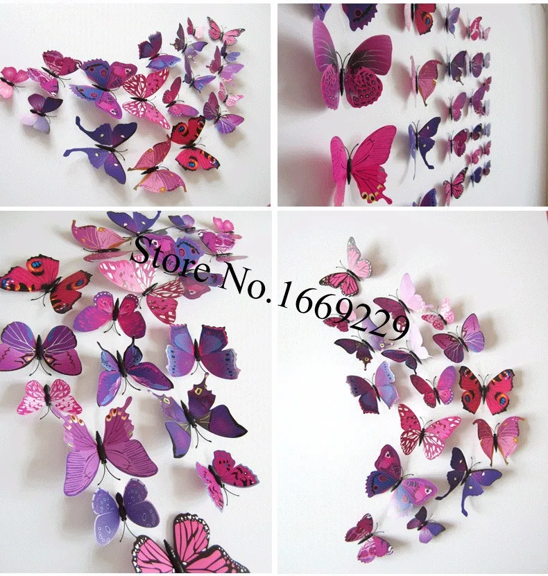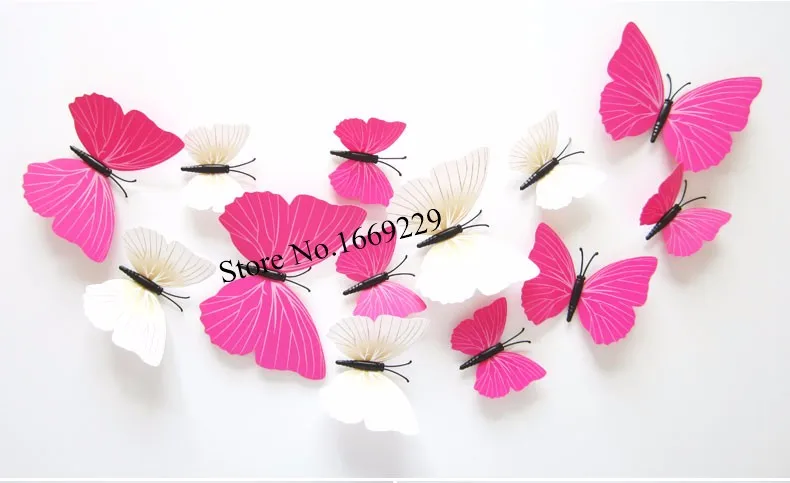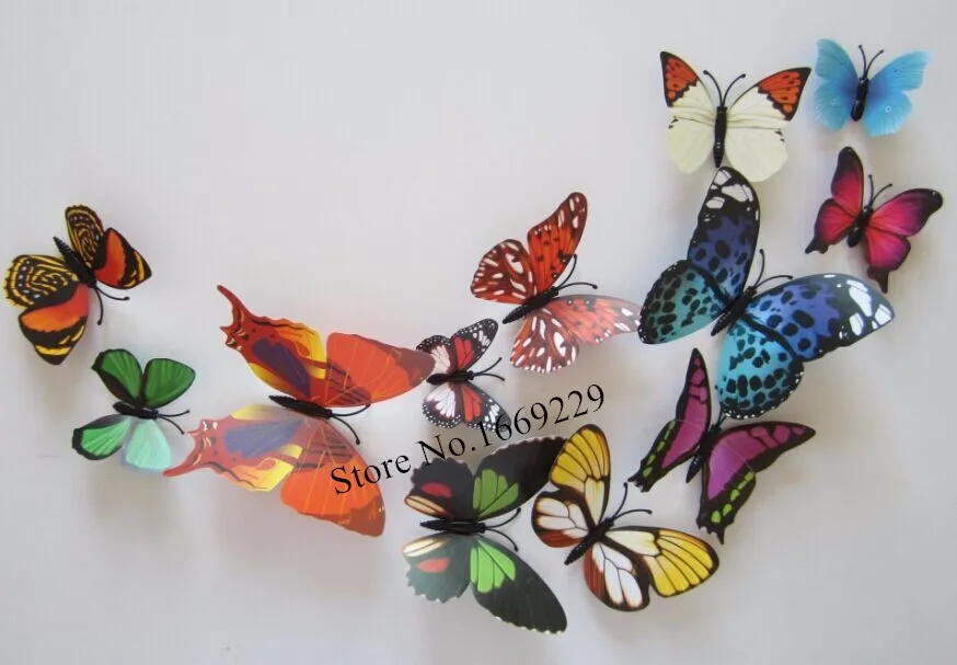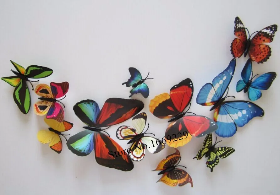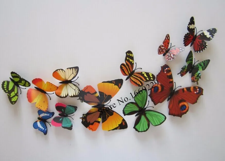 2. 12 pcs 3D butterflies mixed packing, perfect design. Roundly includes two large ones in size 11*9.5 cm, 6 medium ones in size 9.5*8.5 cm, and 4 small ones in size 6*4.5 cm