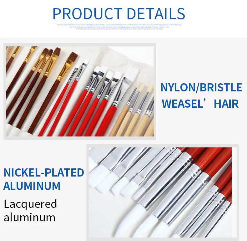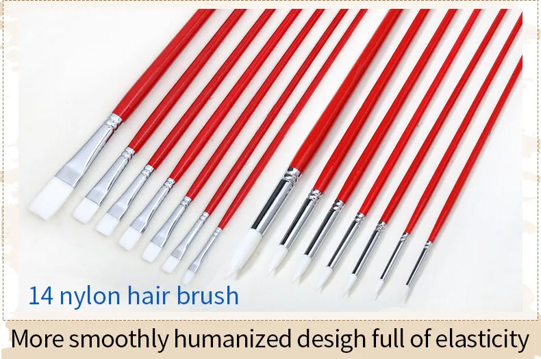 Material: 14pcs Nylon Hair+ 12pcs Bristile Brush+ 12pcs Weasel\'s Hair