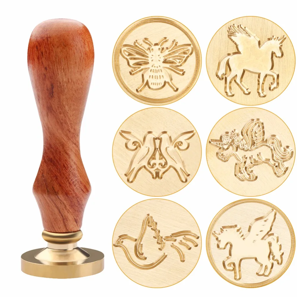 Antique Metal Animals Sealing Wax Stamps Wood Handle Ancient Wedding Invitations Wax Seal Stamp Decor
