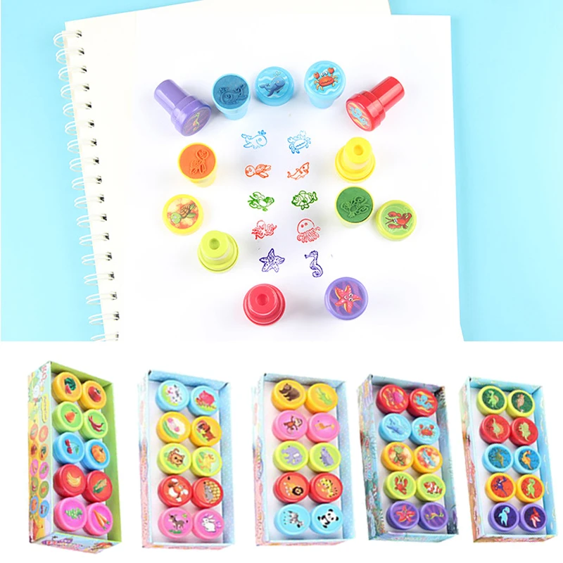 10pcs/Set Children Toy Stamps Cartoon Animals Fruits Vegetable Kids Seal For Scrapbooking Stamper DIY Painting Photo Album Decor