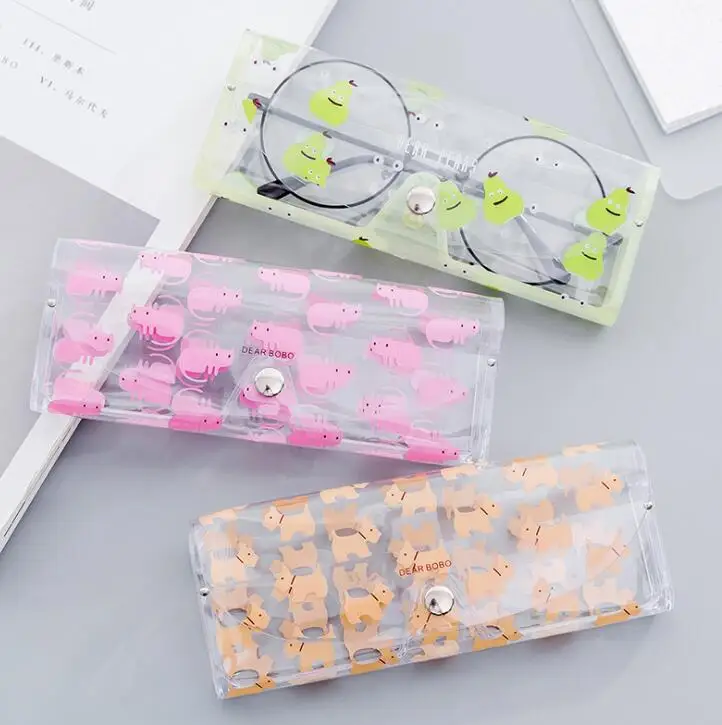 1Pcs Cartoon Animals Transparent Plastic Eye Glasses Protector Case With Metal Button Sunglasses Box Fruit Animal Pencil Case