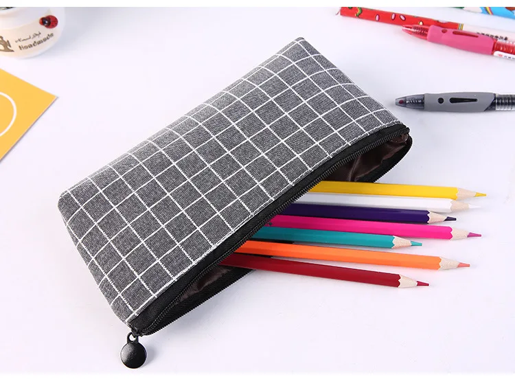 Grid Pencil Case Kawaii Concise Solid Color Canvas Pencil Bag Creative Pencilcase For Gifts School Supplies Cute Stationery