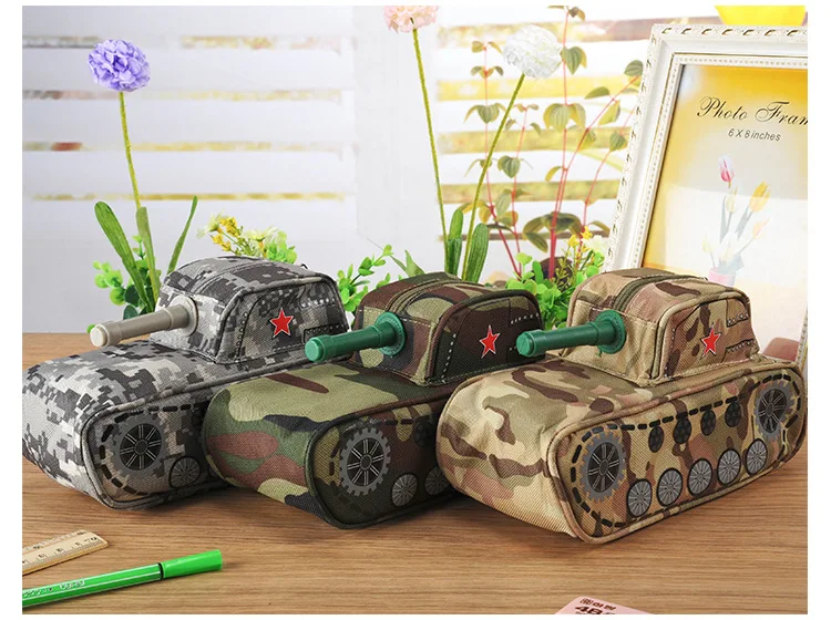 Creative Tank Style Pencil Bag Large Camouflage Canvas Pencil Case With Lock For Boy School Supplies Free Shipping