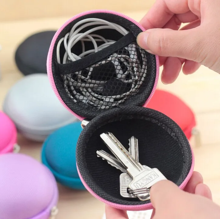 Cute Round Hard Storage Case for Earphone Headphone Earbuds SD TF Cards mini Bag
