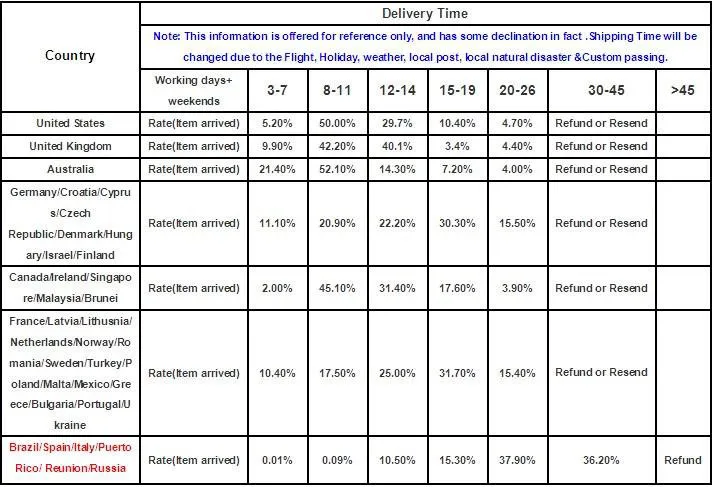 Item are shipped within 5 business days once full payment is settled.If you can\'t get your items in time,please contact to us first,we wil check and solve it for you soon.We will reply your mail within 24 hours normally. sometimes have a little delay due to the weekend or