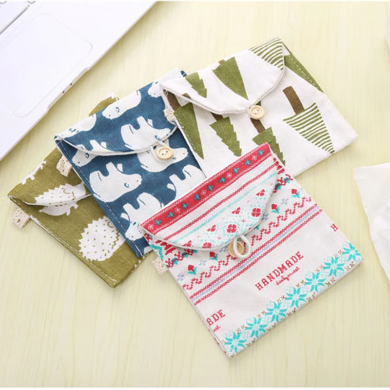 Girls Diaper Sanitary Napkin Storage Bag Canvas Sanitary Pads Package Bags Coin Purse Jewelry Organizer Credit Card Pouch Case 28