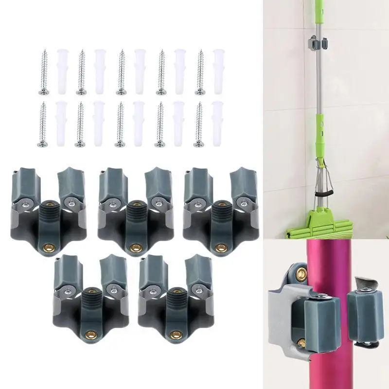5 * OUNONA Mop and Broom Holder Wall Mounted Garden Storage Rack (Grey)