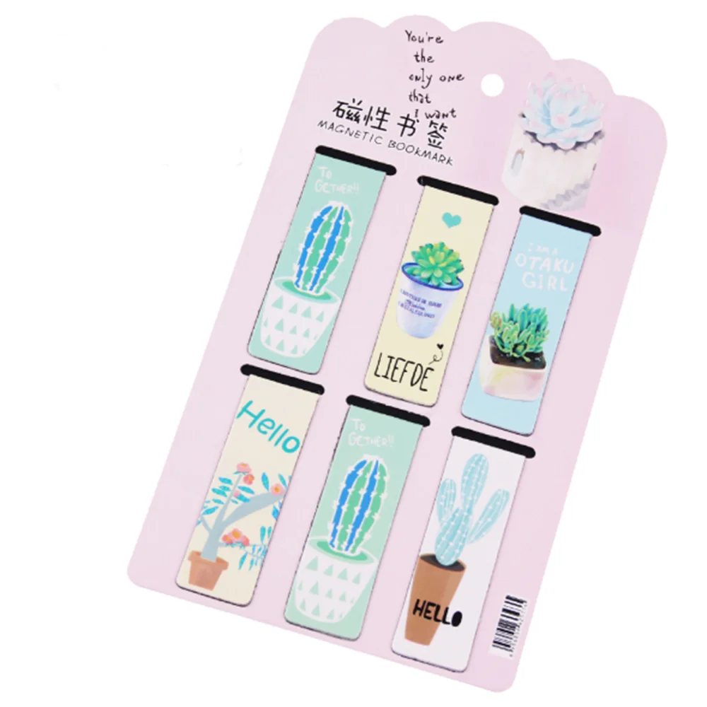 Ewa Król on 15/03/20206 sztuk/zestaw świeże zielone rośliny kaktus magnetyczne zakładki książki Marker strony papiernicze szkolne materiały biurowe sp