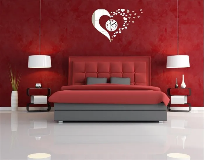 New Mirror Lovely Hearts Wall Art Clock Decal DIY Mirror Wall Watch Safe Novelty Home Decoration Kids Clocks Home Decor