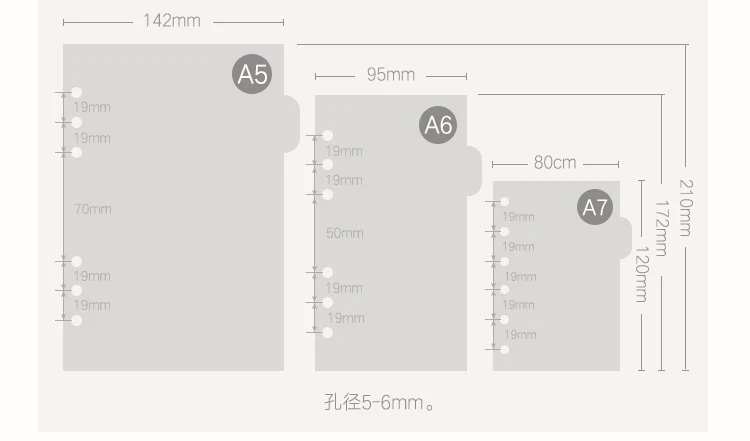 matching 6 holes notebook refiller, its refiller size should be: 9.5(±0.2) * 17.5cm